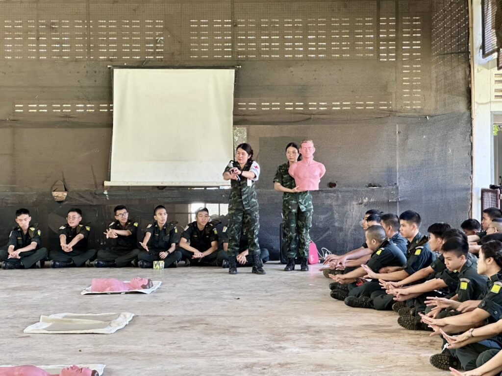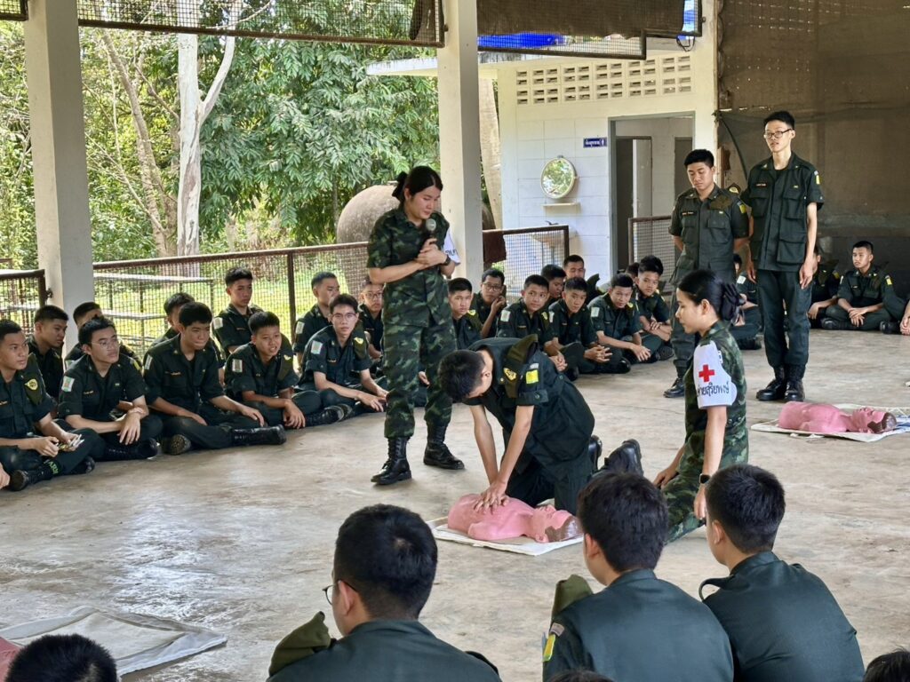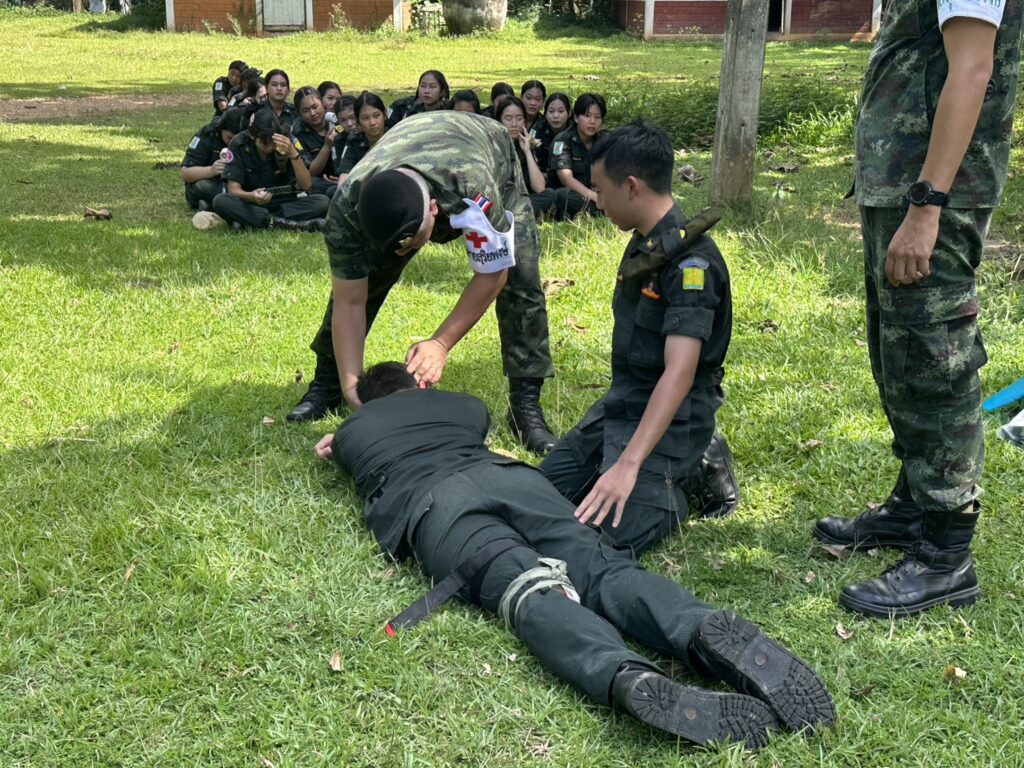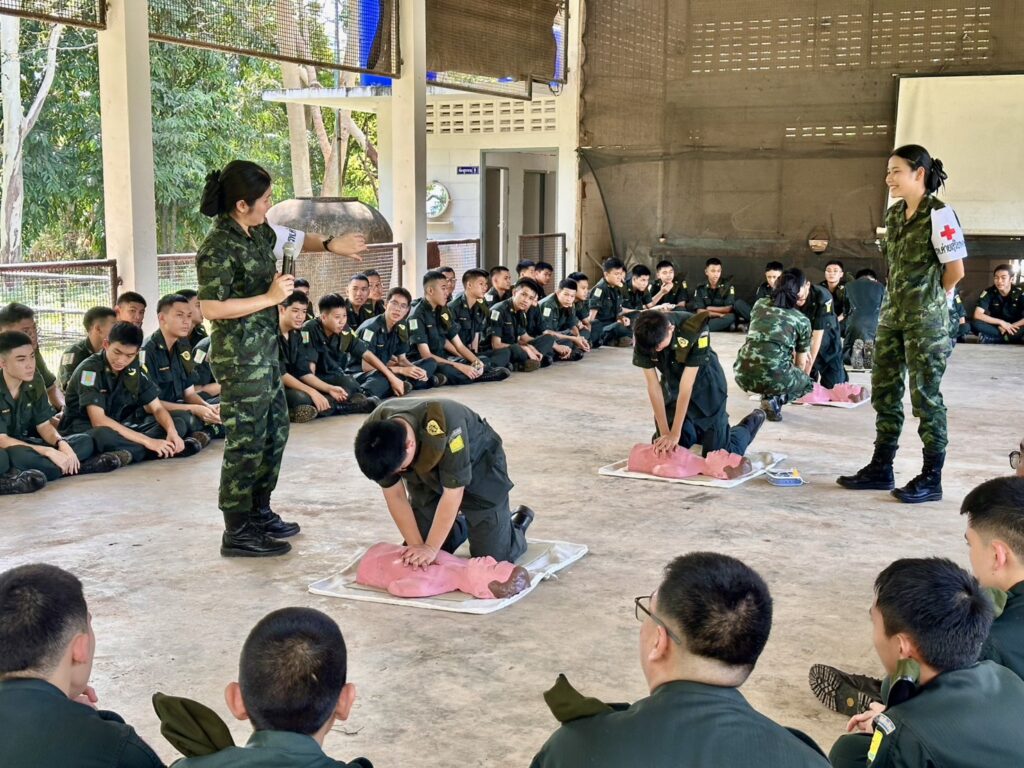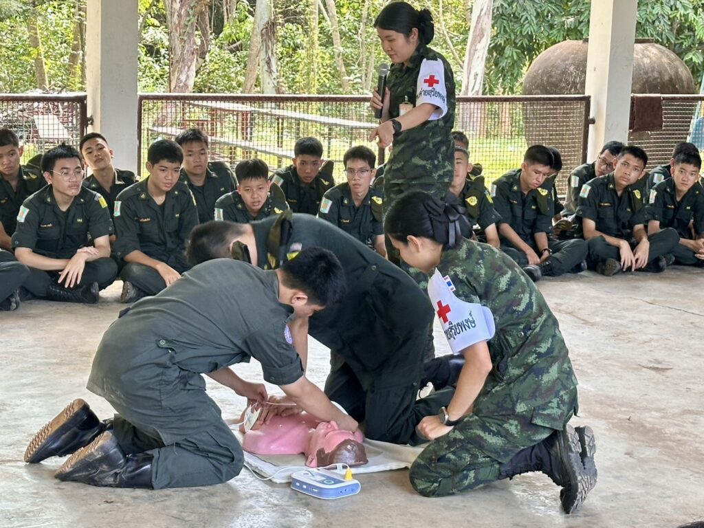 วันที่ 9 ตุลาคม 2568 เจ้าหน้าที่พยาบาล โรงพยาบาลค่ายสุริยพงษ์ จัดการกิจกรรมอบรม ให้ความรู้ “ การปฐมพยาบาลเบื้องต้น และการช่วยฟื้นคืนชีพ CPR ” ให้กับน้องๆ นักศึกษาวิชาทหาร ชั้นปีที่ 1 และปีที่ 2 โรงเรียนศรีสวัสดิ์วิทยาคาร, โรงเรียนสตรีศรีน่าน และโรงเรียนน่านคริสเตียนศึกษา จ.น่าน เพื่อเพิ่มพูนความรู้ ทักษะ ในการช่วยเหลือตัวเองหรือเพื่อนร่วมชั้นเรียน และผู้ประสบอุบัติเหตุจริง ได้ทันท่วงที ณ สนามฝึกนักศึกษาวิชาทหาร ฐานปฏิบัติการแสงเพ็ญ ต.ฝายแก้ว อ.ภูเพียง จ.น่าน
