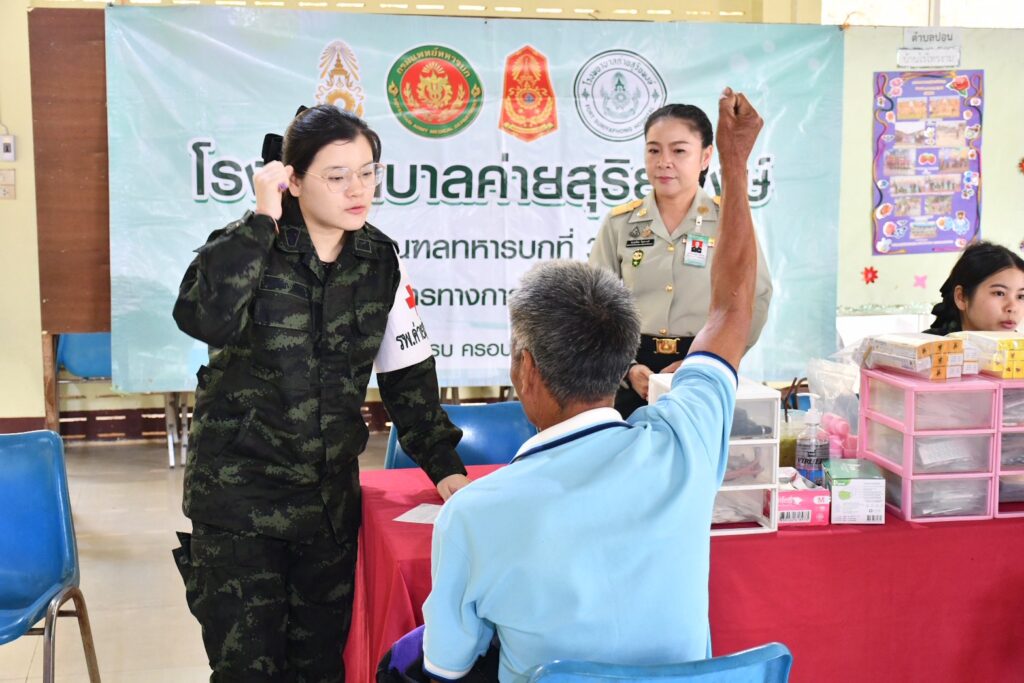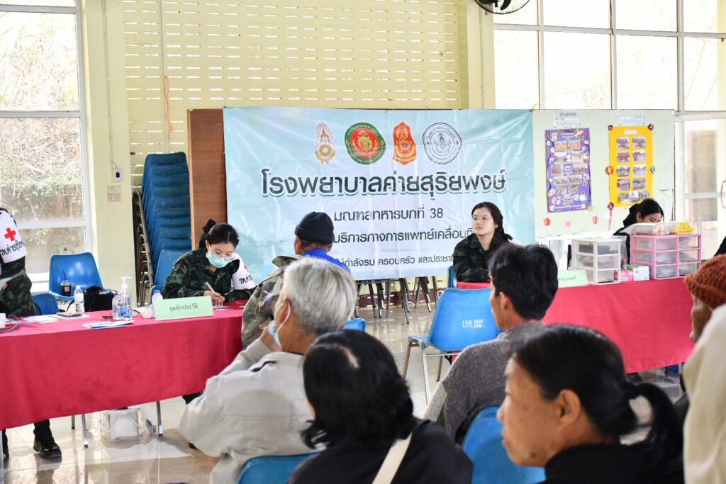 วันที่ 22 มกราคม 2569 โรงพยาบาลค่ายสุริยพงษ์ มณฑลทหารบกที่ 38 นำชุดแพทย์เคลื่อนที่ ร่วมกับสำนักงานสงเคราะห์ทหารผ่านศึกเขตน่าน ออกให้บริการทางการแพทย์เบื้องต้น และเยี่ยมบ้านทหารผ่านศึก พิการทุพพลภาพ สอบถามความเป็นอยู่ ให้การดูแลอย่างใกล้ชิด เนื่องจากวีรกรรมความกล้าหาญ ความเสียสละในสนามรบในอดีต โดยจัดตั้งจุดบริการตรวจโรคเบื้องต้น ให้กับทหารผ่านศึกและครอบครัวในพื้นที่ใกล้เคียง โดยมีผู้เข้ารับบริการตรวจโรคทั่วไปจำนวน 41 ราย ณ หอประชุมที่ว่าการอำเภอทุ่งช้าง จังหวัดน่าน และเดินเท้าเยี่ยมบ้านทหารผ่านศึกพิการทุพพลภาพ 2 ราย ในพื้นที่ อำเภอทุ่งช้าง จังหวัดน่าน