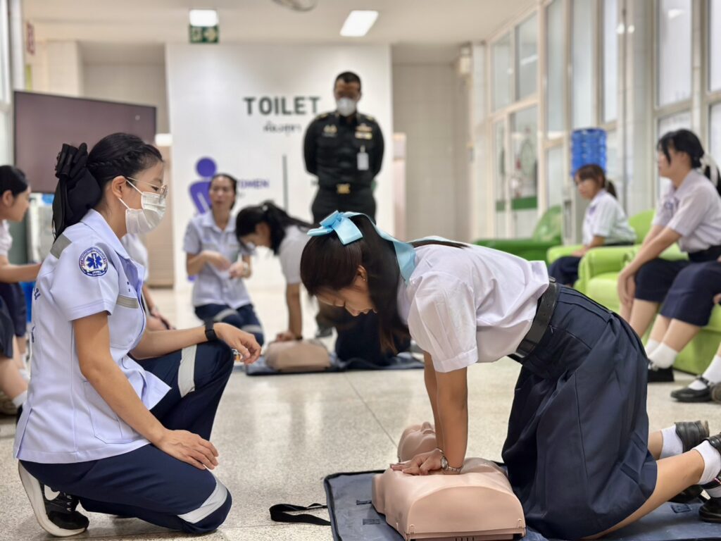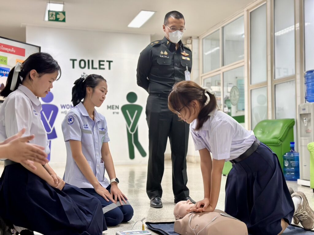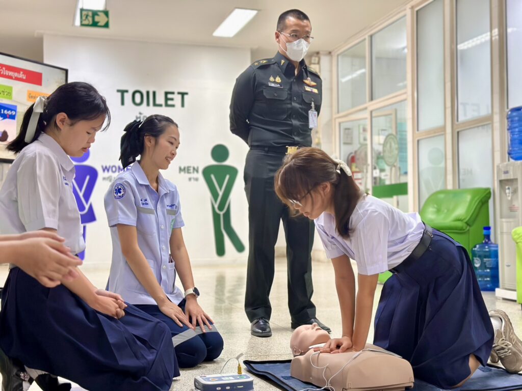 อีกทั้งมีการอบรมให้ความรู้ การปฏิบัติการช่วยฟื้นคืนชีพด้วยวิธีปั๊มหัวใจ (CPR) ร่วมกับการใช้อุปกรณ์ช่วยเหลือ เครื่องกระตุ้นไฟฟ้าหัวใจอัตโนมัติ (AED) เพื่อให้นักเรียน ที่มาศึกษาดูงาน ได้รับความรู้ มีความชำนาญในการช่วยชีวิตฉุกเฉิน เมื่อเกิดอุบัติเหตุ สามารถช่วยเหลือประชาชนผู้ประสบเหตุจริงได้อีกด้วย