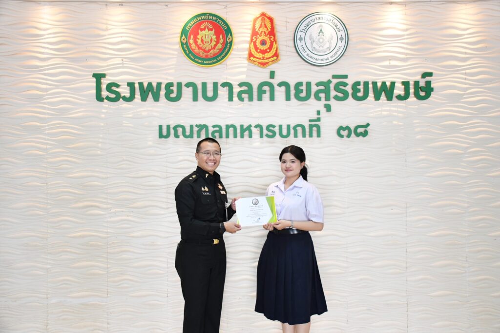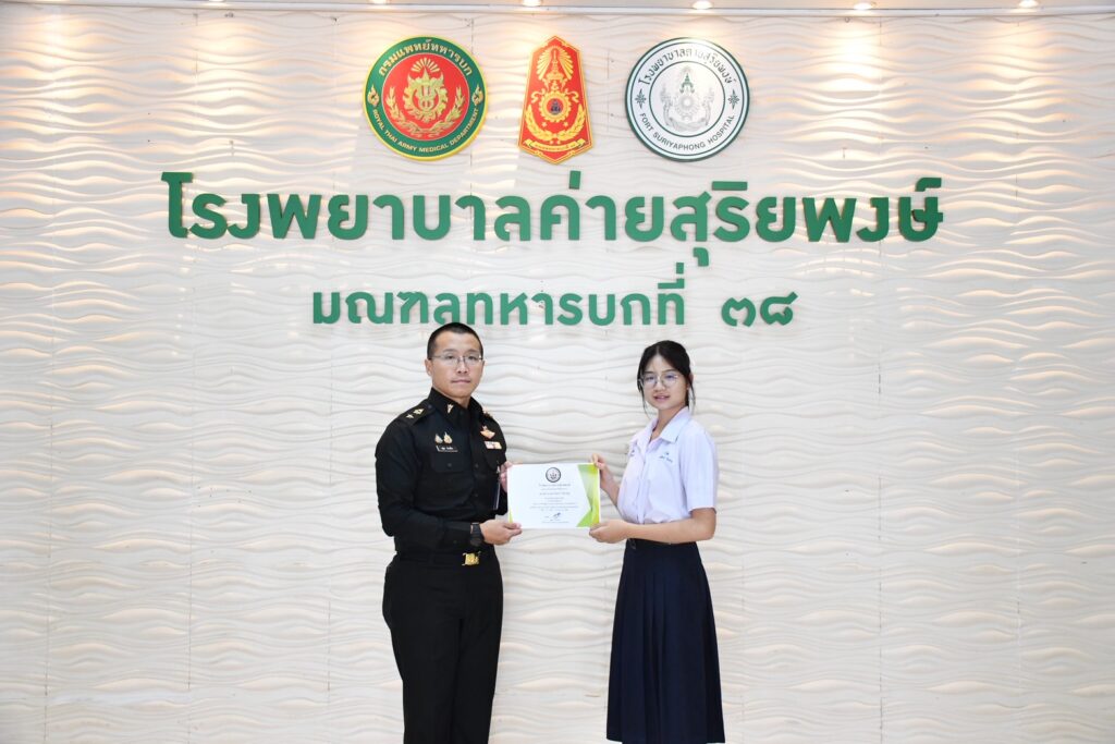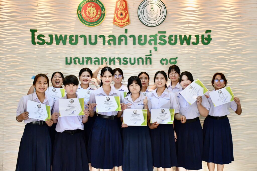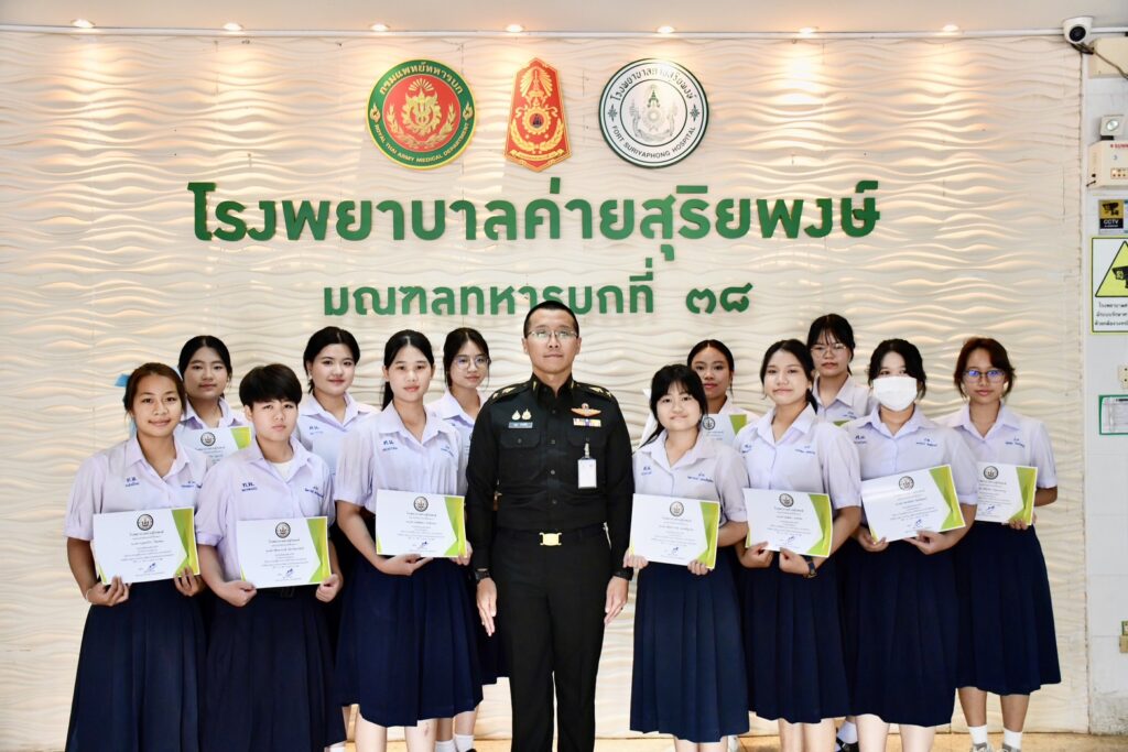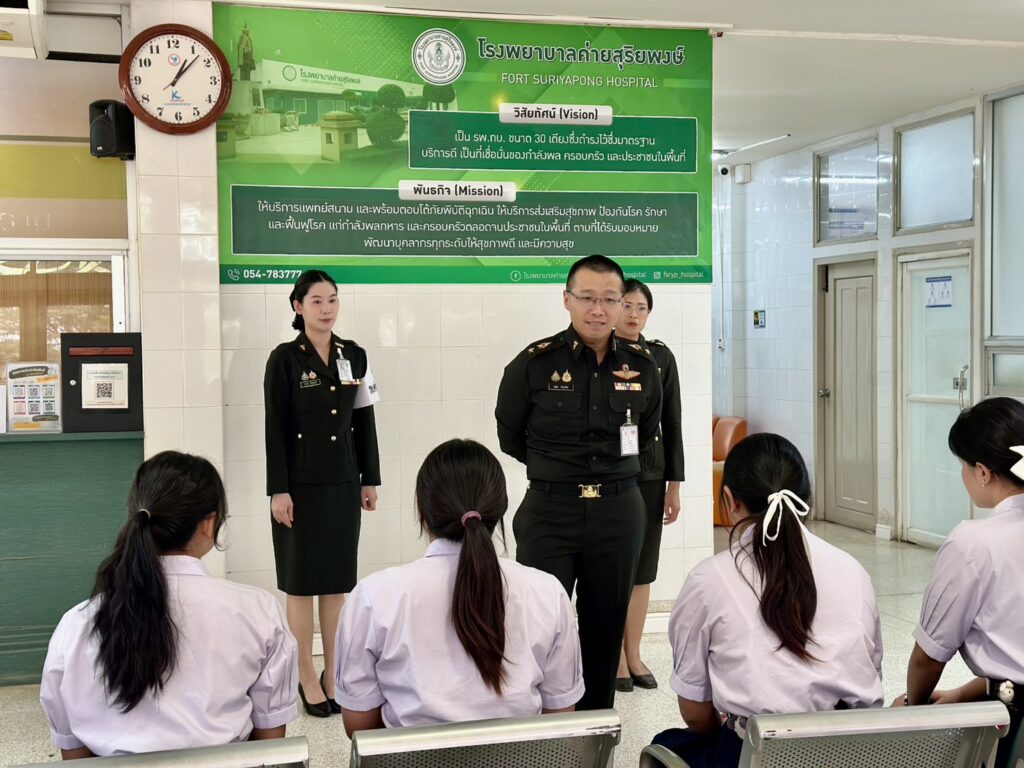 วันที่ 3 มี.ค. 2569 พ.ท.สุขุม ส่งเสริม ผอ.รพ.ค่ายสุริยพงษ์ ให้การสนับสนุน การศึกษาดูงานฝึกประสบการณ์เกี่ยวกับสายงานอาชีพต่างๆ ในโรงพยาบาล ของนักเรียนระดับชั้นมัธยมศึกษาปีที่ 4 และปีที่ 5 ของโรงเรียนสตรีศรีน่าน จำนวน 12 คน ที่แผนกพยาบาล, แผนกทันตกรรม, แผนกพยาธิ, แผนกรังสี และแผนกฝังเข็ม โดย ผอ.รพ.ค่ายสุริยพงษ์ ได้ให้โอวาทพร้อมมอบใบประกาศให้กับนักเรียนดังกล่าว ที่ผ่านการศึกษาดูงานฝึกประสบการณ์ ณ รพ.ค่ายสุริยพงษ์